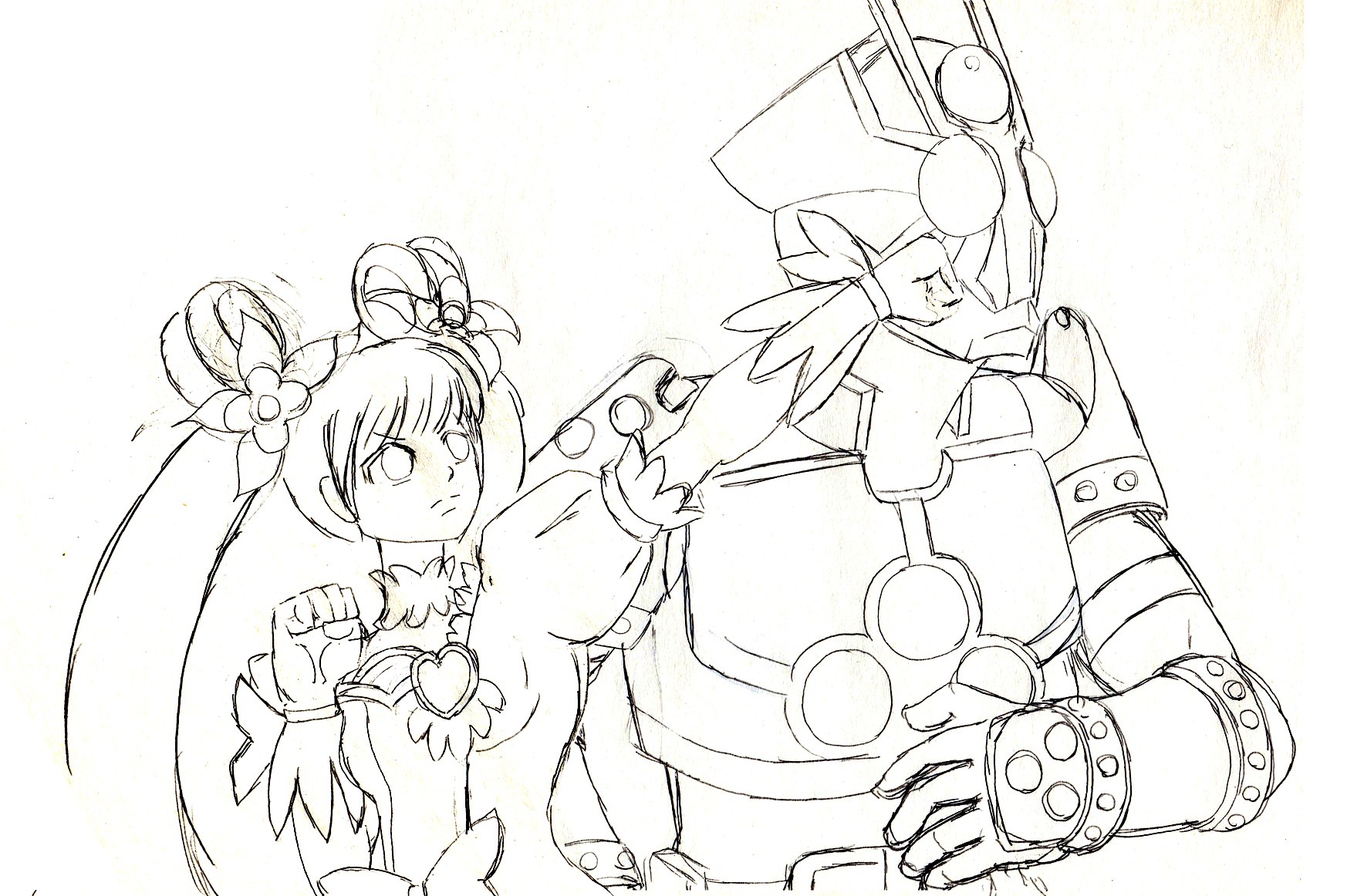 そういう理由で同じクラブの戦士であるロゼッタにやっつけられてる所をと思って描いた一枚ですが、色つけまでやるか微妙な出来なんでとりあえず落書きで公開。