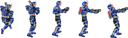 ジャンプして登場、銃を向けて射撃までの一連動作です。