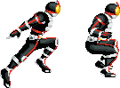 ファイズ素材 ジャンプ 2015.05.28 ファイズジャンプ用素材。 現状ジャンプは上昇・頂点・下降の3枚を描くようにしていますが、ファイスは上昇と下降を流用して2枚しか描いていなかったようです。 前傾気味になっているのは、クリムゾンスマッシュ時のジャンプが前方に飛びながらポインターを打ち出すタイプだったから。 制作初期、ライダーのジャンプはライダーキック時に使い回しのできるようにライダーキック時のモーションに似せて造っていました。