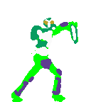 ブラーボ作画過程 2014.03.03 このサイズだと鎧表面のトゲトゲ表現はそれっぽく見えるよう適当に描くしかないです。 鎧表面は∠こんな感じでドットを置いてそれっぽく見える感じにしてます。 鎧はそれなりに何とかなりますが、固有武器のドリノコのトゲはどうもしっくり描けませんでした。 トゲが短くて太いので、1ドットのギザギザでは細かすぎる感じに見えるからですかね。 この解像度のドット絵で描くにはかなり再現率が難しいキャラだと思います。
