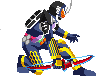 ジンバーキック着地 2014.09.10 無頼キック着地の改変ですが、元絵がやや巨大化しているようなので、サイズを弄っているうちになんだかデッサンが狂ったらしく、元絵とは少し違和感がある形に。 元絵が肩装甲のせいで体の大半が隠れているせいで、胴体や腰がどんな角度に捻られているのかが判り難い。 右手はもっと地面に向けて肩を入れて突き出されてるような気がする。 ただ、ヘタに弄ると今より違和感出る可能性もあるので、とりあえず、ここに止めときます。